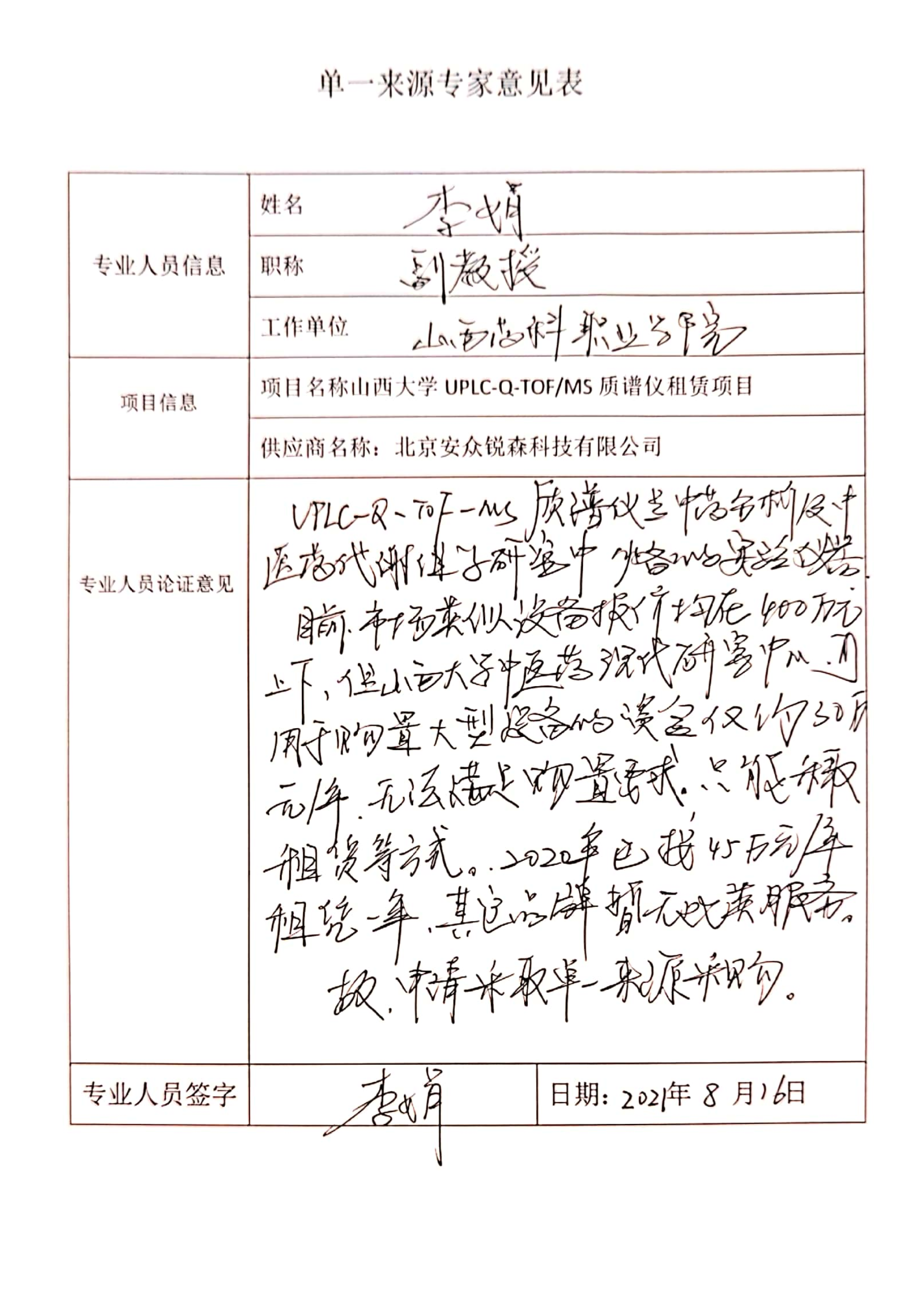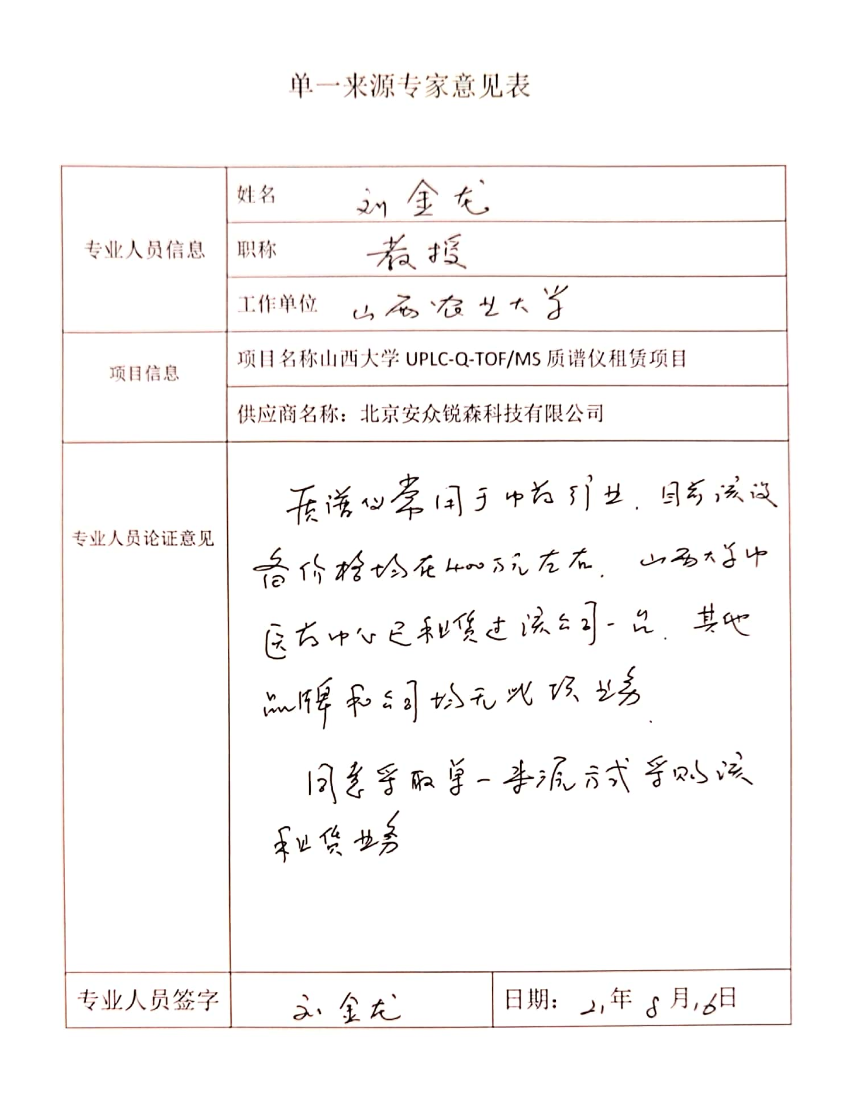 经多方了解,只有AB Sciex公司有出租业务,其它品牌暂无此类服务。故申请采取单一来源采购。