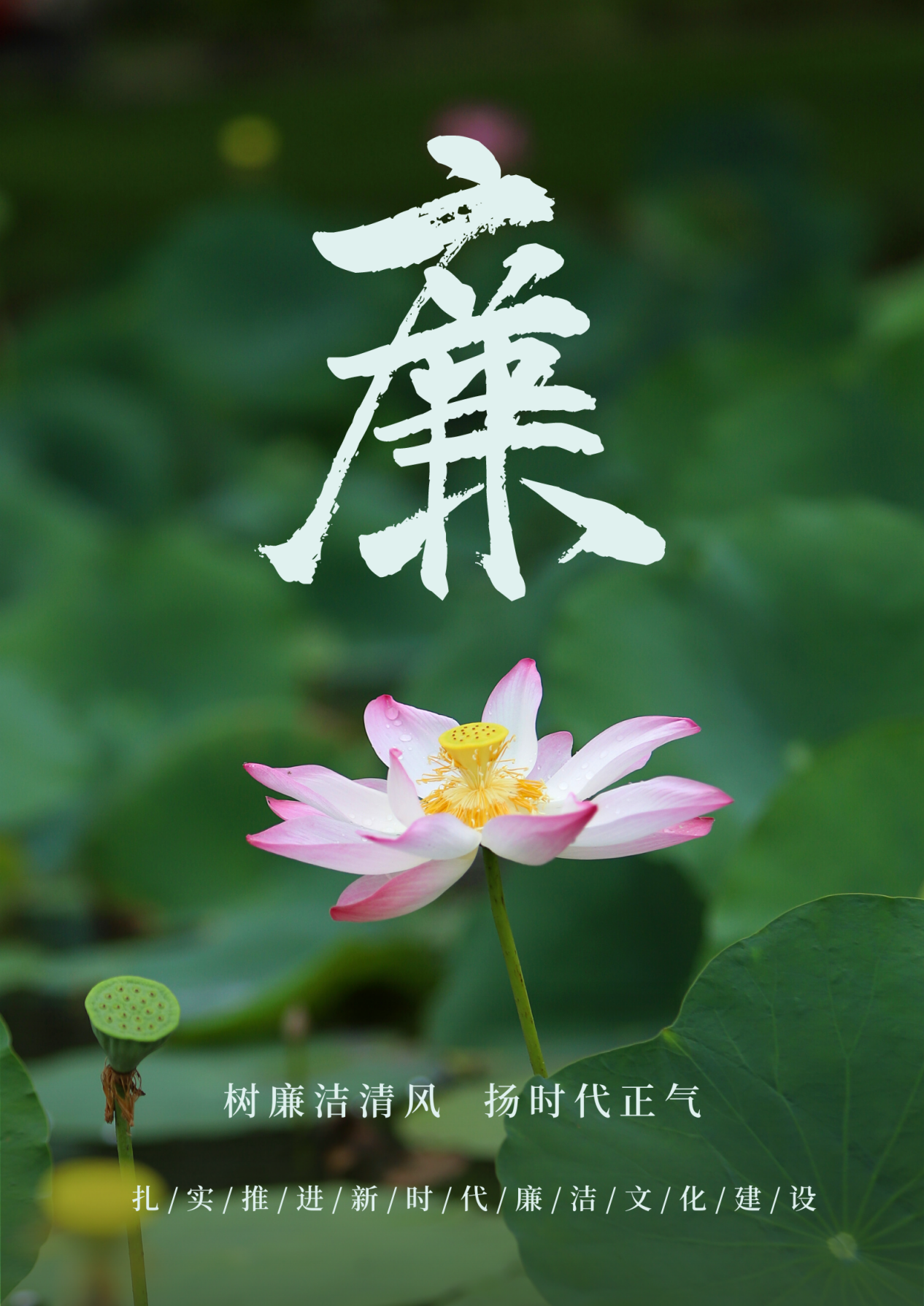 作品以莲花为衬托,选取象征纯洁的蓝绿色调,使海报体现出廉洁的气氛。