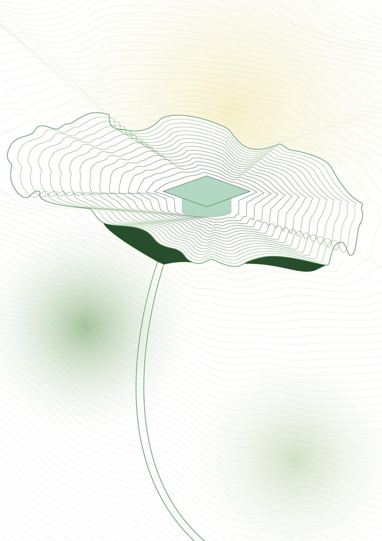 用学士帽的轮廓和莲叶的轮廓组合而成,象征校园学术廉洁,无暇。