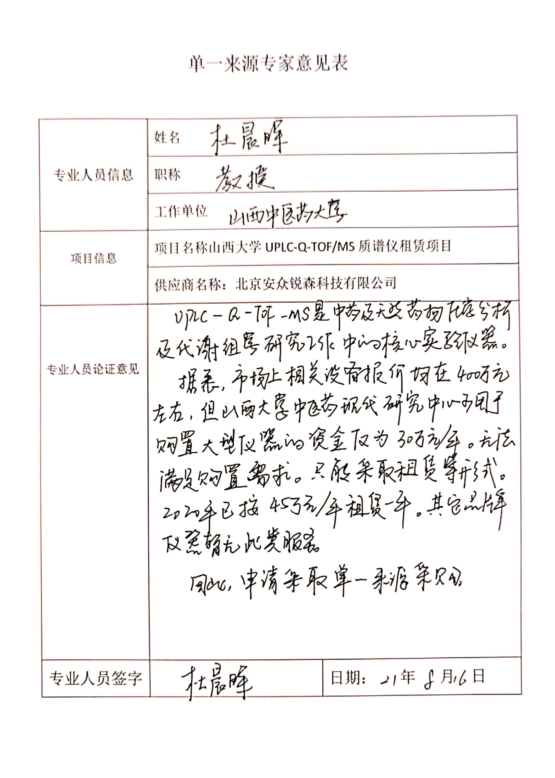 经多方了解,只有AB Sciex公司有出租业务,其它品牌暂无此类服务。故申请采取单一来源采购。